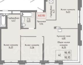 Продается четырехкомнатная квартира в новом строящемся доме в ЖК Пульсар, ввод в эксплуатацию 2 квартал 2026 году. Общая площадь квартиры составляет 90,95 кв.м. Квартира расположена на 3-м этаже 24-этажного дома.