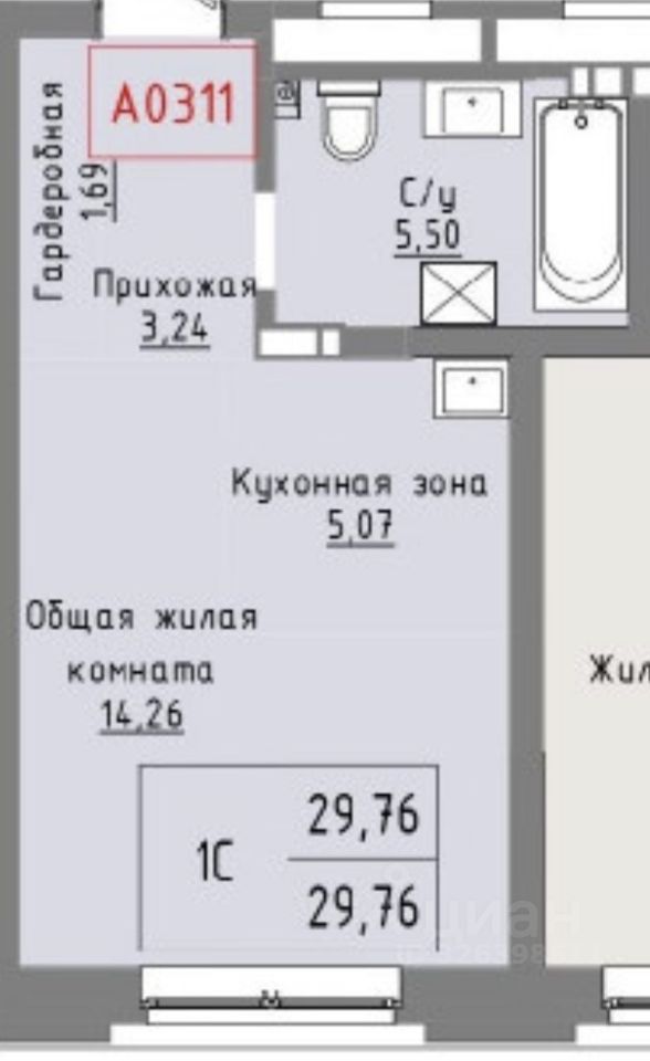 Продается однокомнатная квартира в новом строящемся доме в ЖК Пульсар, ввод в эксплуатацию 2 квартал 2026 году. Общая площадь квартиры составляет 29,76 кв.м. Квартира расположена на 3-м этаже 24-этажного дома.