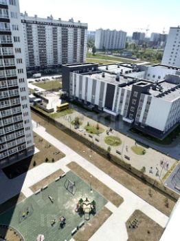 Панорама на озеро, город, детскую площадку и школу (15 этаж).