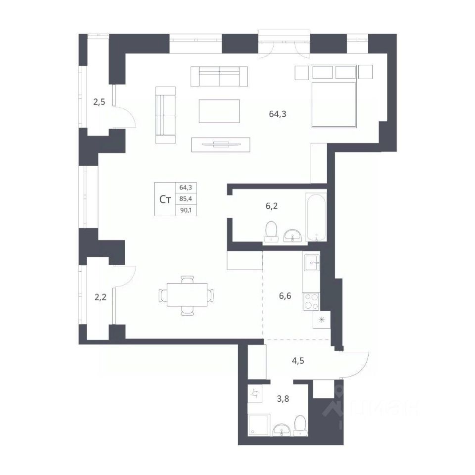 Продается 1-комн. студия с отделкой White box. Квартира расположена на 23 этаже 25 этажного монолитно-кирпичного дома в клубном комплексе "Новаторы" от группы компаний "Поляков".