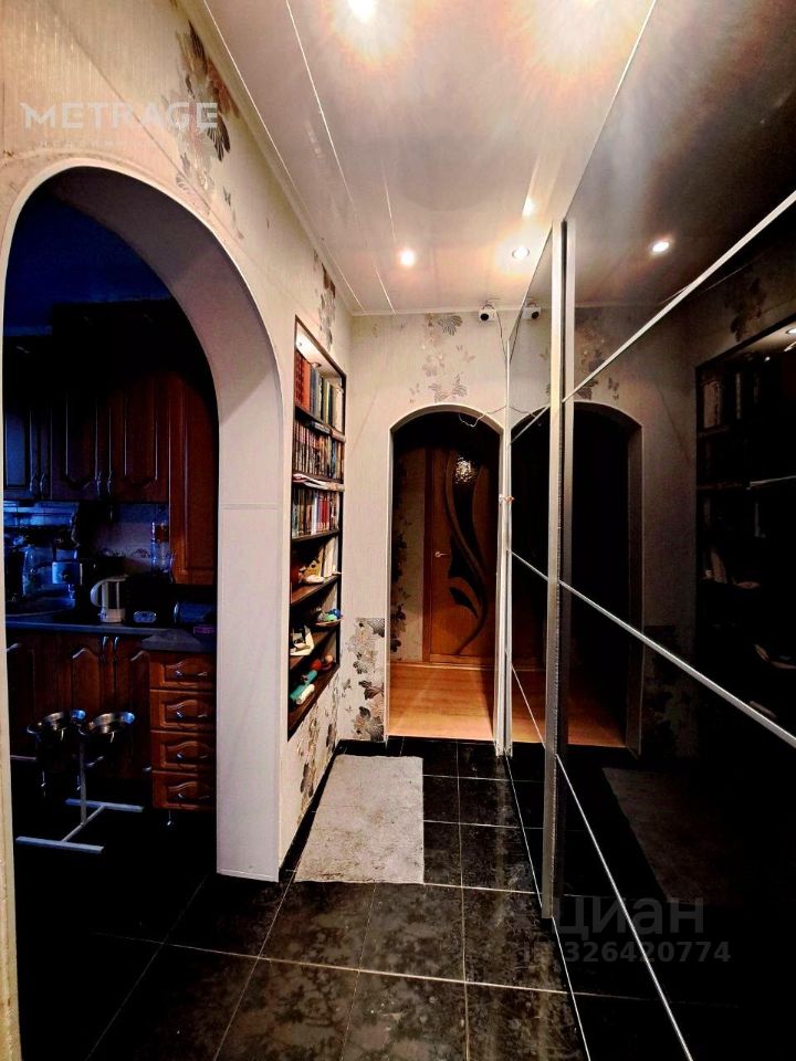 • Функциональный коридор: В прихожей установлен огромный зеркальный шкаф во всю стену, что избавляет комнаты от лишней мебели. Также есть удобные встроенные полки для книг и декора.