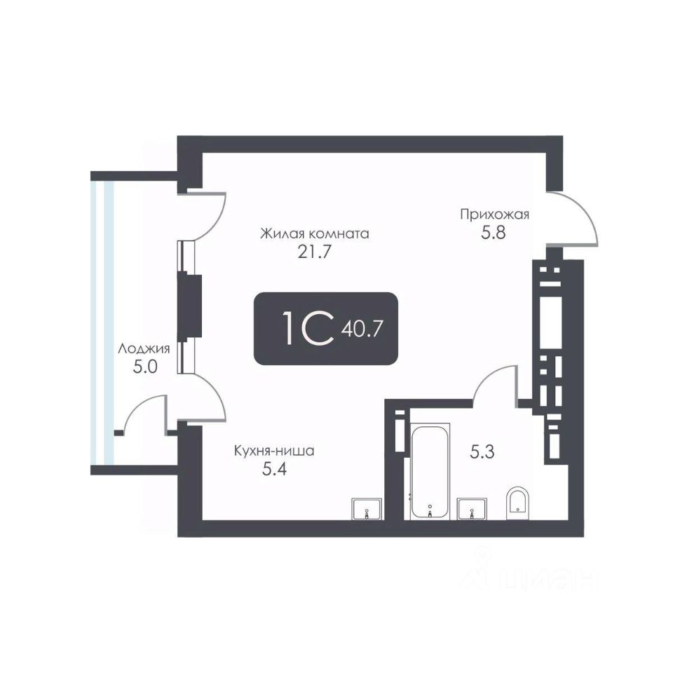 Общая площадь40,7 м²