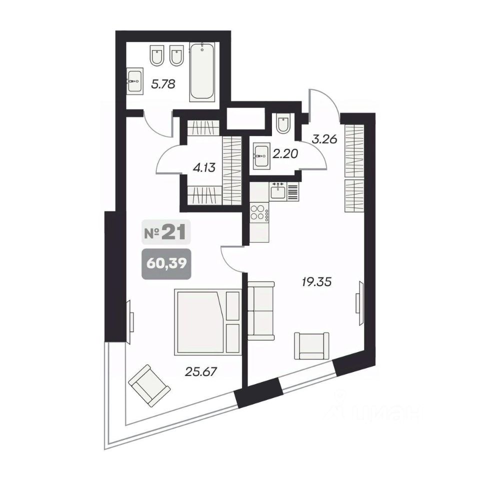 Общая площадь60,39 м²