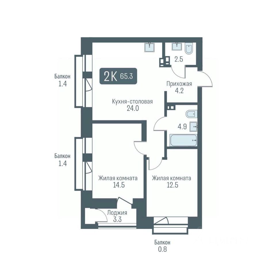Общая площадь65,3 м²