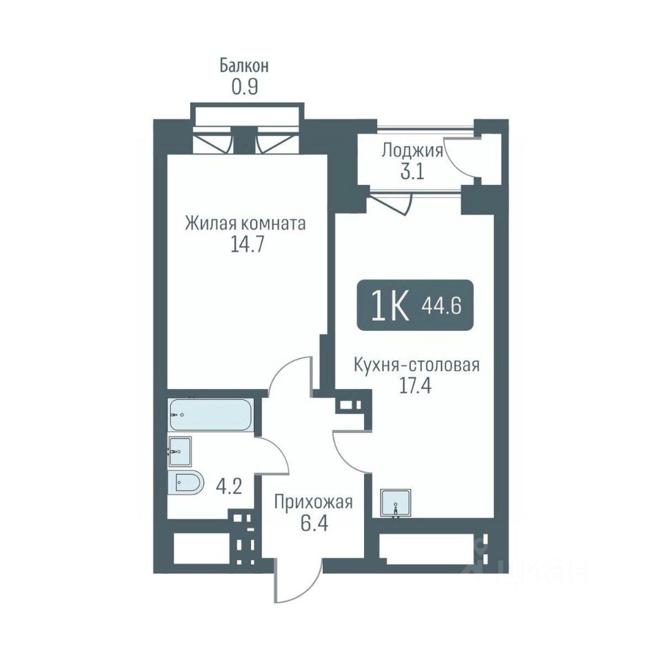 Общая площадь44,6 м²