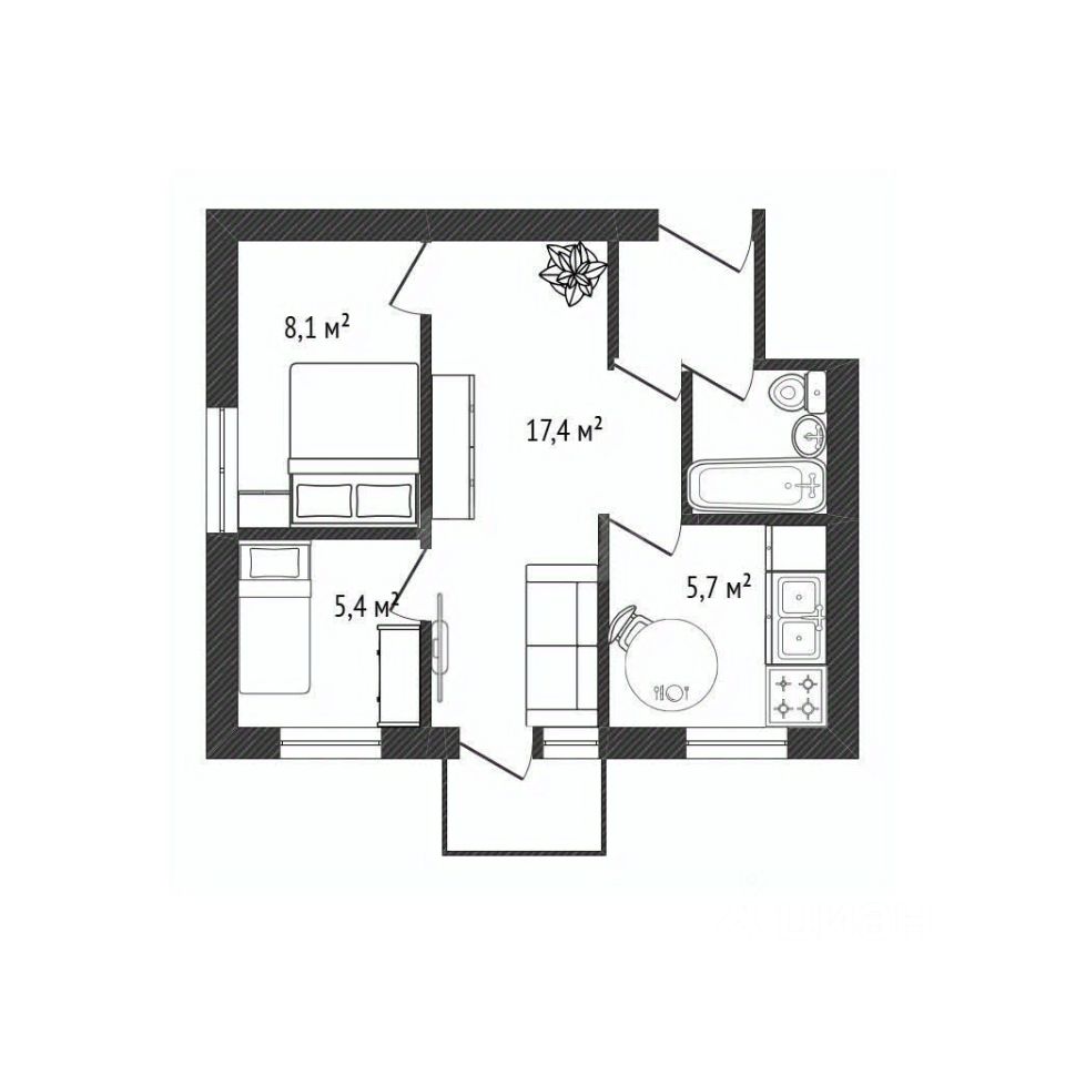 Кирпичный дом обеспечивает хорошую тепло- и шумоизоляцию, а расположение в центре делает эту квартиру выгодным вариантом как для собственного проживания, так и для инвестиций под аренду.