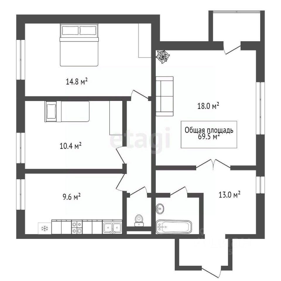 69,5 м²