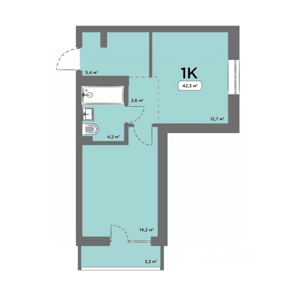 Общая площадь42,3 м²