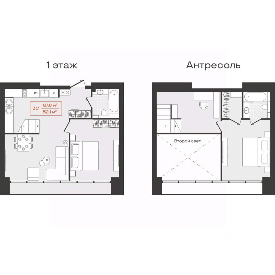 Общая площадь52,1 м²