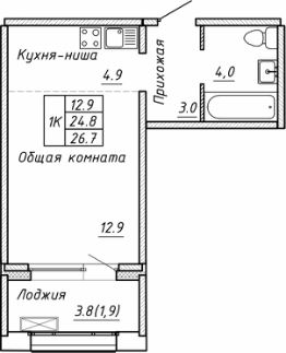 26,7 м²