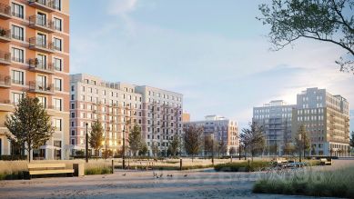 Район "Пшеница" — это квартальная среднеэтажная застройка с закрытыми от машин безопасными дворами. В основу проекта мы заложили три принципа. Первый — разнообразие и плотность. Для нас важно создать среду, где человек в шаговой доступности мог бы получить любой сервис.