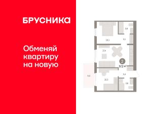 Продается 2-комн. квартира с предчистовой отделкой в ЖК "Пшеница" на 2 этаже. Общая площадь: 57.24 кв.м. Высота потолков 2.82 м.