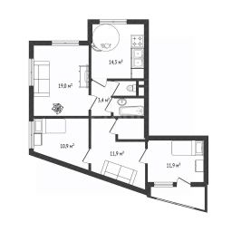 Продам просторную трехкомнатную квартиру площадью 76.1 кв.м. расположенную на третьем этаже с двумя лифтами и всего двумя квартирами на площадке, что обеспечивает тишину и приватность.