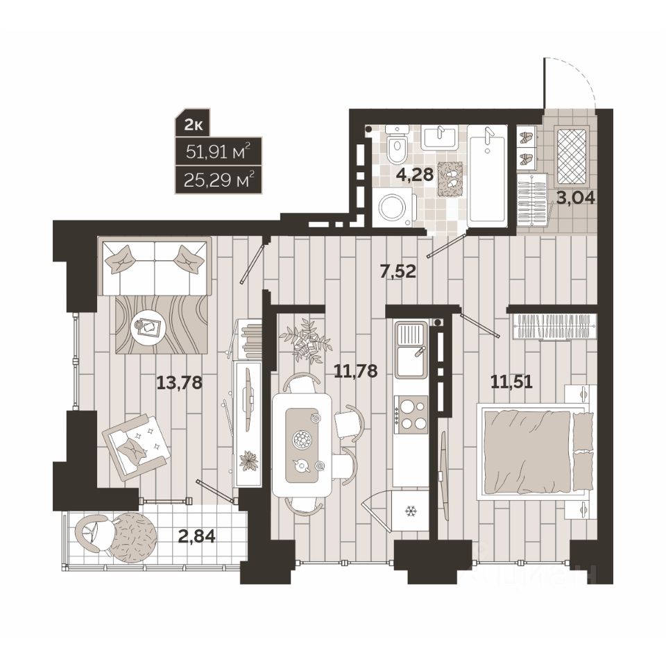 Общая площадь51,89 м²