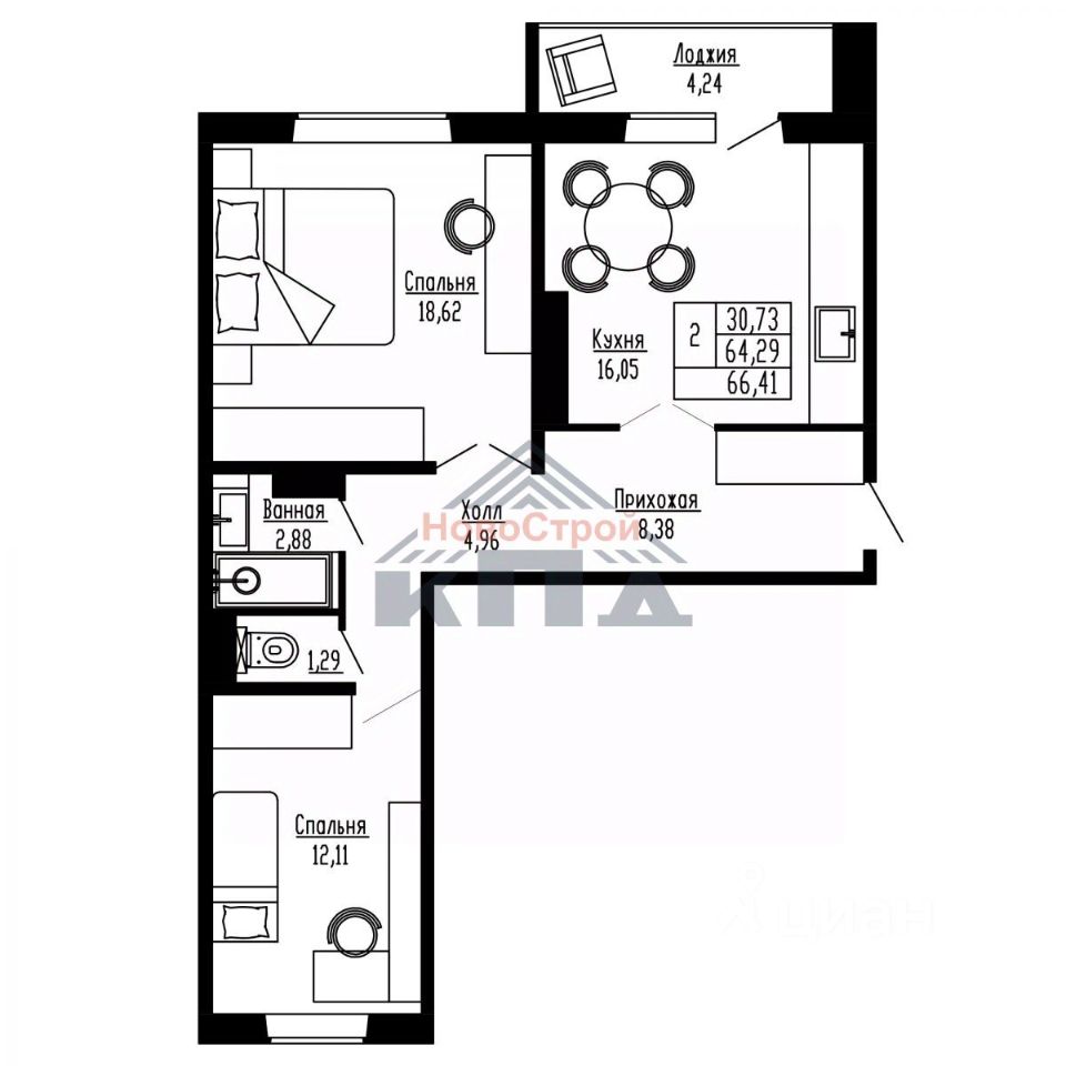Продаётся 2-комнатная квартира в строящемся доме (Дом 1), срок сдачи: IV-кв. 2027, общей площадью 66.41 кв.м., на 3 этаже. Новые жилые дома от застройщика "Завод сборного железобетона 6" расположены в Первомайском районе Новосибирска на ул. Радиостанция 2.