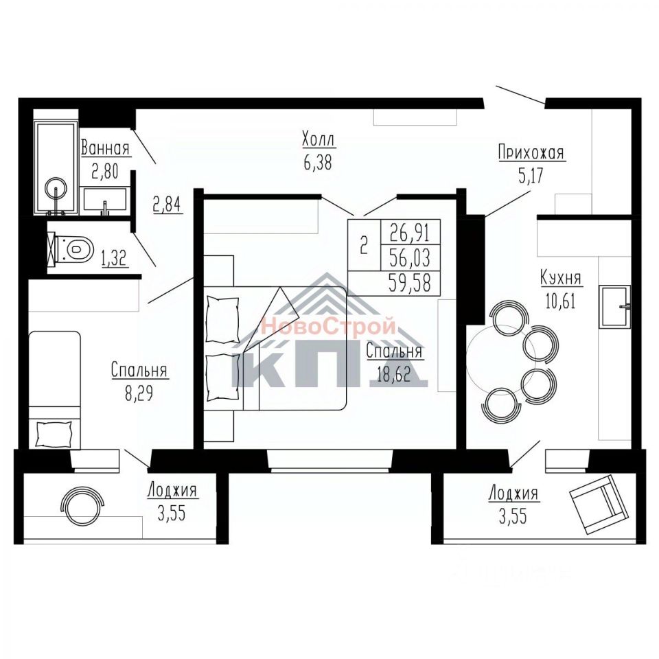 Продаётся 2-комнатная квартира в строящемся доме (Дом 1), срок сдачи: IV-кв. 2027, общей площадью 59.58 кв.м., на 11 этаже. Новые жилые дома от застройщика "Завод сборного железобетона 6" расположены в Первомайском районе Новосибирска на ул. Радиостанция 2.