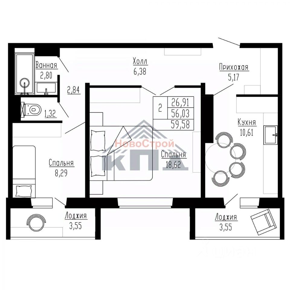 Продаётся 2-комнатная квартира в строящемся доме (Дом 1), срок сдачи: IV-кв. 2027, общей площадью 59.58 кв.м., на 8 этаже. Новые жилые дома от застройщика "Завод сборного железобетона 6" расположены в Первомайском районе Новосибирска на ул. Радиостанция 2.