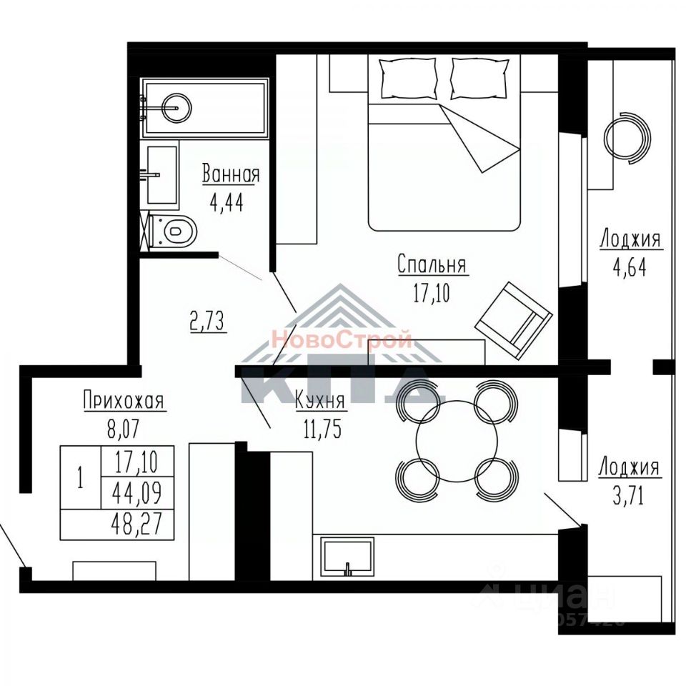 Продаётся 1-комнатная квартира в строящемся доме (Дом 1), срок сдачи: IV-кв. 2027, общей площадью 48.27 кв.м., на 15 этаже. Новые жилые дома от застройщика "Завод сборного железобетона 6" расположены в Первомайском районе Новосибирска на ул. Радиостанция 2.