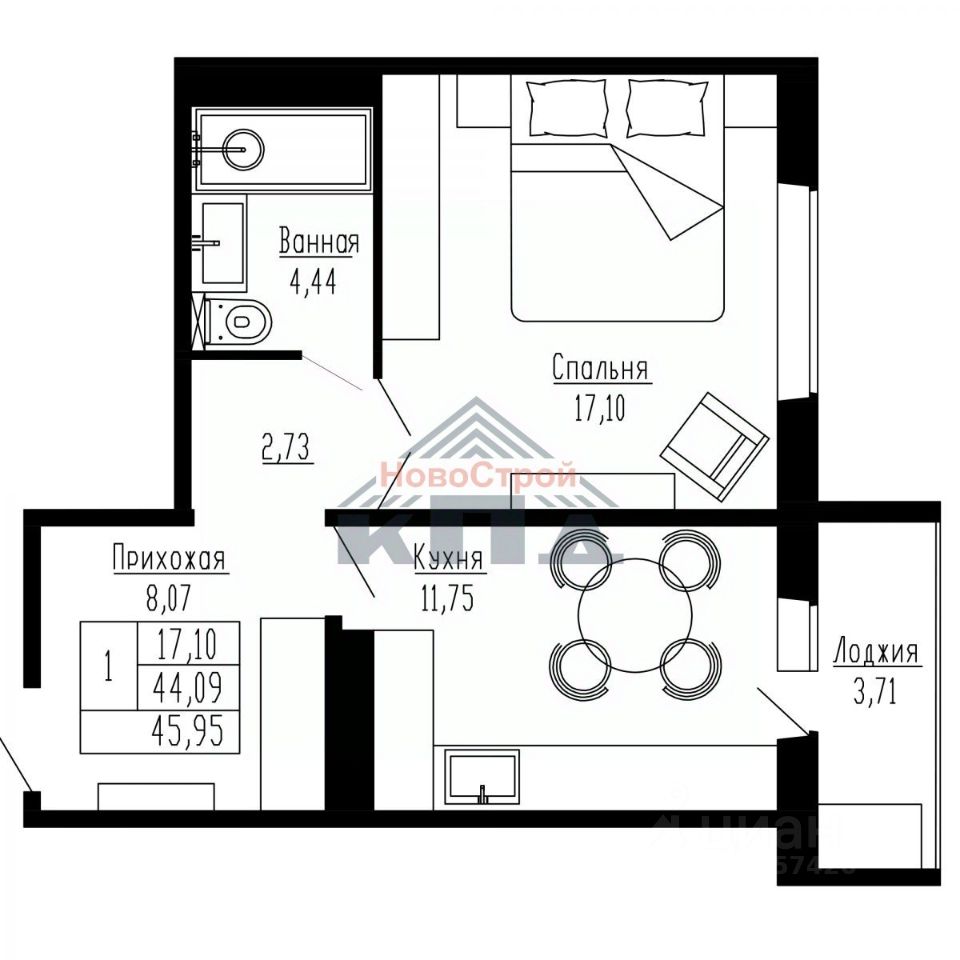 Продаётся 1-комнатная квартира в строящемся доме (Дом 1), срок сдачи: IV-кв. 2027, общей площадью 45.95 кв.м., на 11 этаже. Новые жилые дома от застройщика "Завод сборного железобетона 6" расположены в Первомайском районе Новосибирска на ул. Радиостанция 2.
