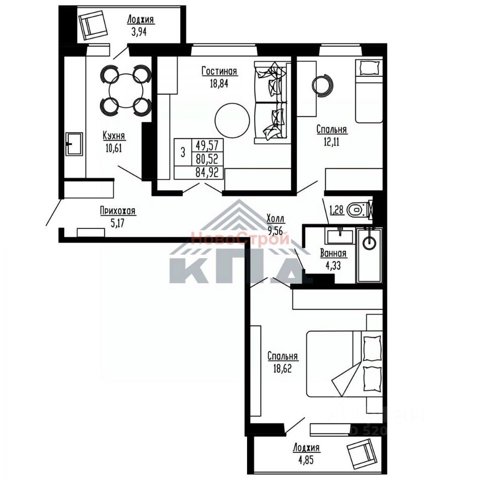 Продаётся 3-комнатная квартира в строящемся доме (Дом 1), срок сдачи: IV-кв. 2027, общей площадью 84.92 кв.м., на 1 этаже. Новые жилые дома от застройщика "Завод сборного железобетона 6" расположены в Первомайском районе Новосибирска на ул. Радиостанция 2.