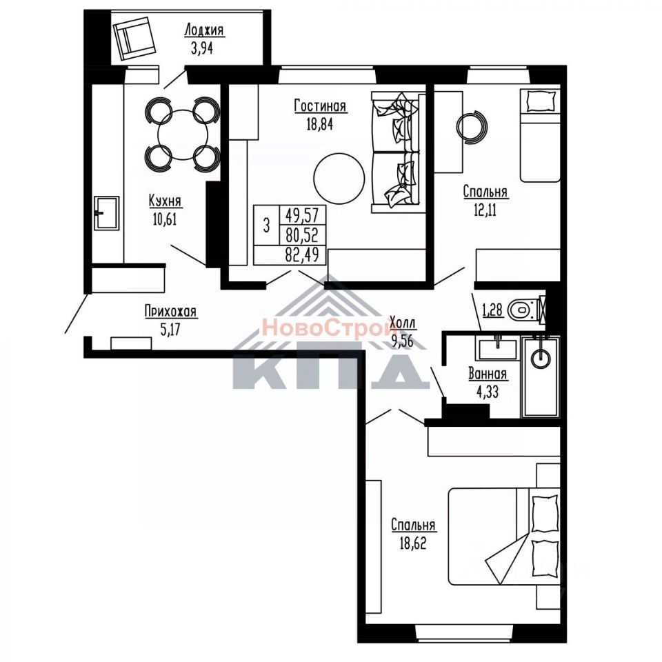 Продаётся 3-комнатная квартира в строящемся доме (Дом 1), срок сдачи: IV-кв. 2027, общей площадью 82.49 кв.м., на 6 этаже. Новые жилые дома от застройщика "Завод сборного железобетона 6" расположены в Первомайском районе Новосибирска на ул. Радиостанция 2.