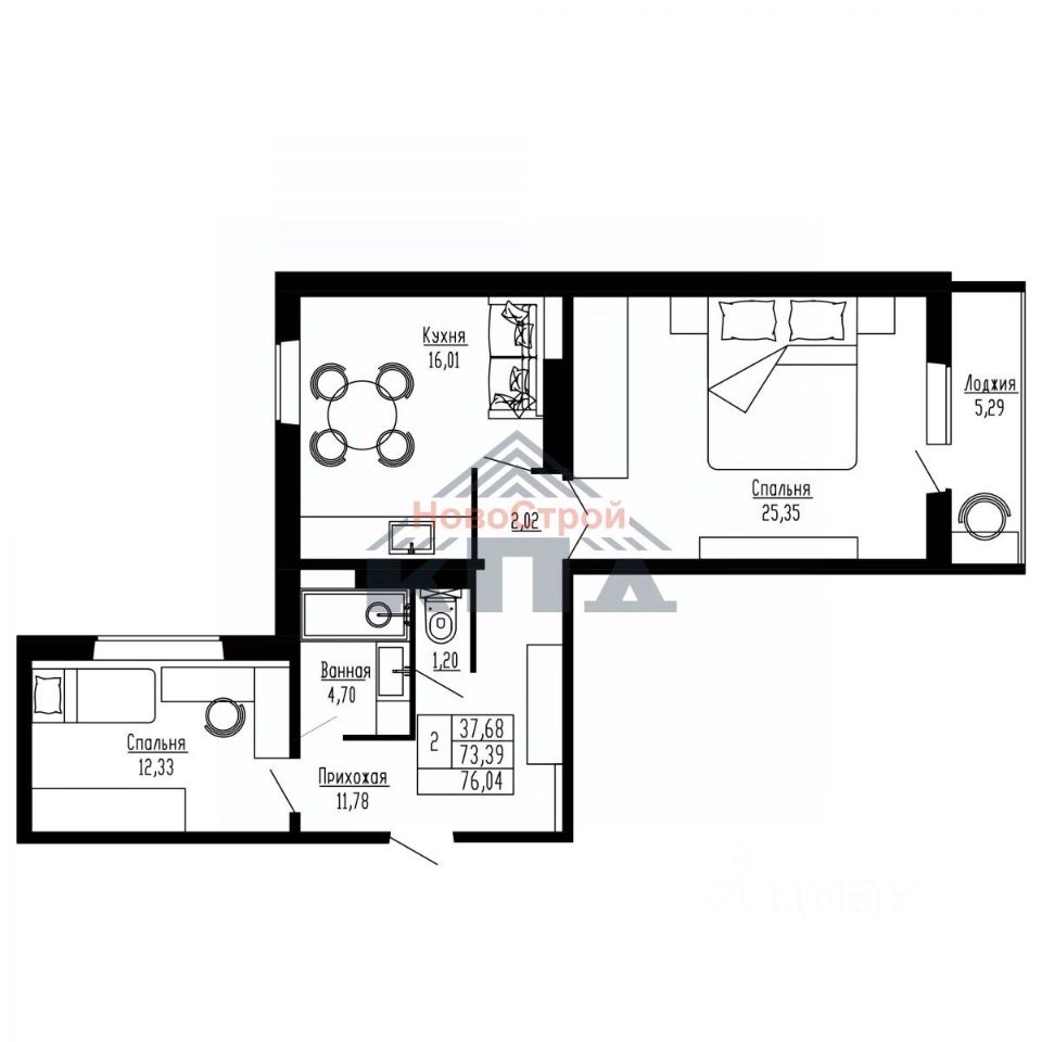 Продаётся 2-комнатная квартира в строящемся доме (Дом 1), срок сдачи: IV-кв. 2027, общей площадью 76.04 кв.м., на 5 этаже. Новые жилые дома от застройщика "Завод сборного железобетона 6" расположены в Первомайском районе Новосибирска на ул. Радиостанция 2.