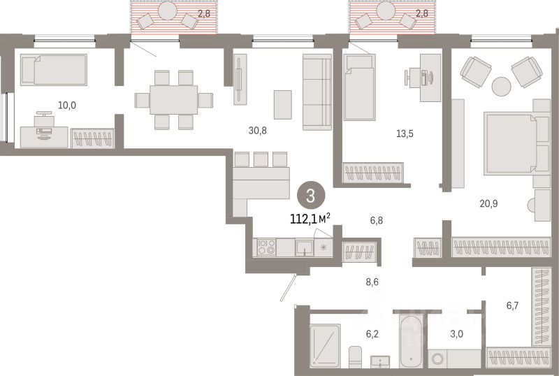 Продаётся 3-комнатная квартира в строящемся доме (Дом 44), срок сдачи: II-кв. 2026, общей площадью 112.1 кв.м., на 8 этаже. Микрорайон "Европейский берег" расположен на правом берегу Оки, между Бугринским и Октябрьским мостами, в пятнадцати минутах езды от центра Новосибирска. Прямой доступ на Большевистскую улицу (магистраль Р-256 "Чуйский тракт") обеспечивает удобный и быстрый путь в любой район города. По трассе можно совершить путешествие через Алтай до границы с Монголией.