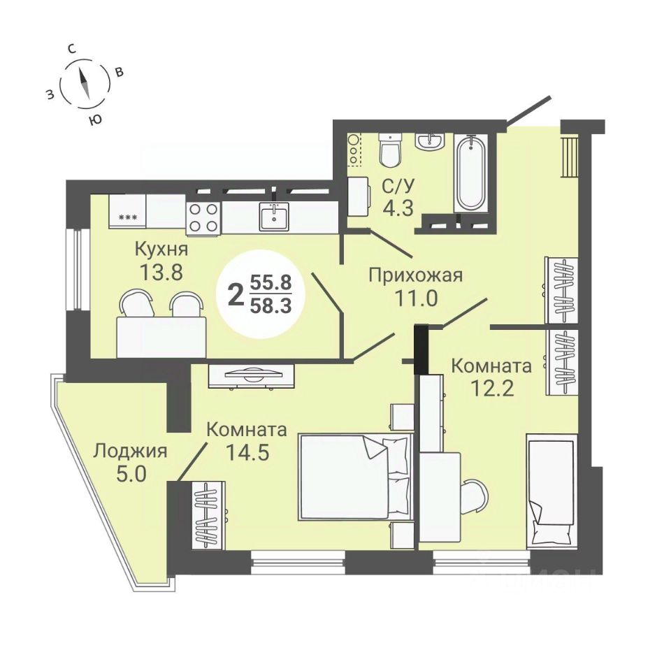 Продаётся 2-комнатная квартира в сданном доме (Дом 2), срок сдачи: I-кв. 2024, общей площадью 58.3 кв.м., на 16 этаже. ЖК "На Петухова" находится в Кировском районе города Новосибирска по ул. Петухова.