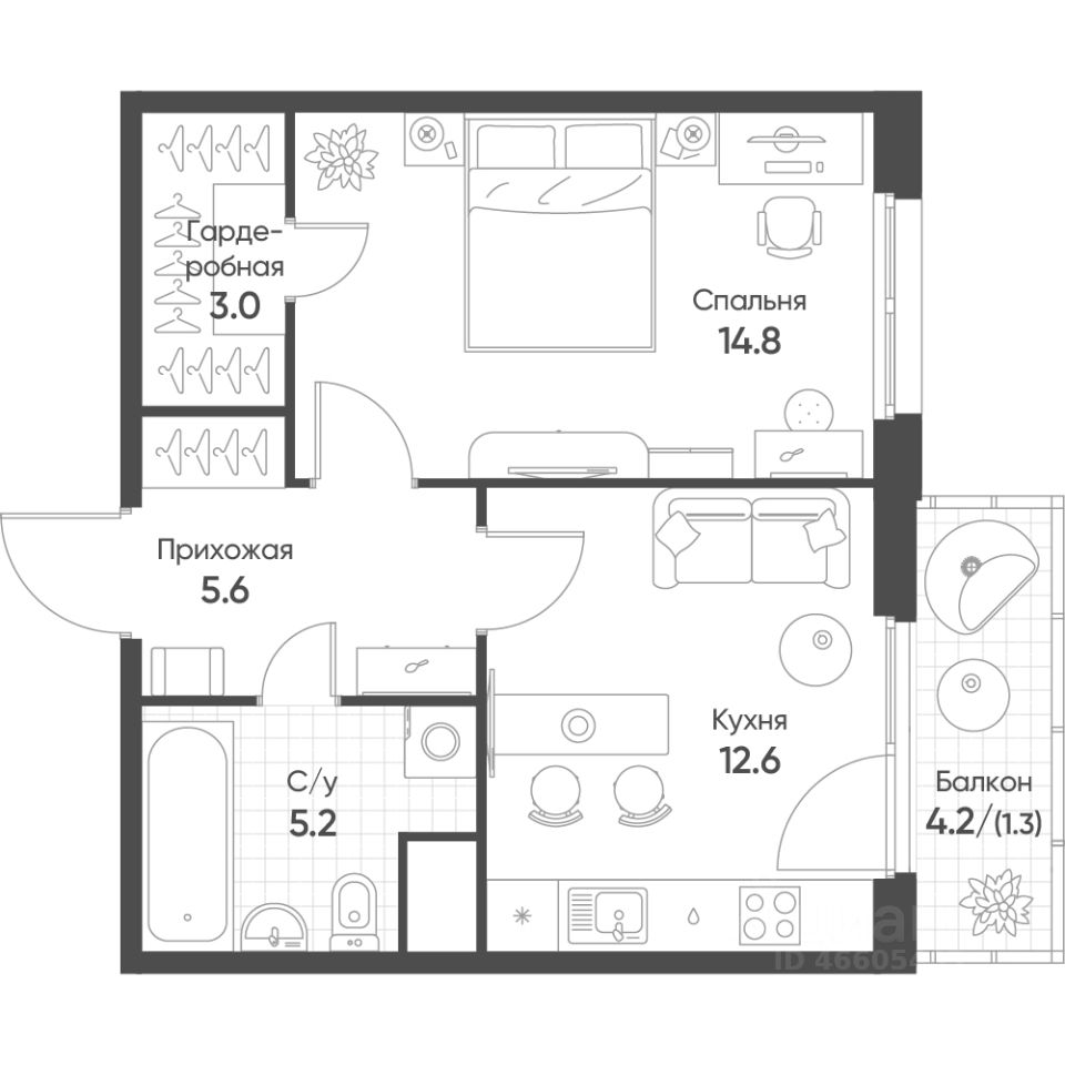 Продаётся 1-комнатная квартира в строящемся доме (Корпус 1), срок сдачи: II-кв. 2026, общей площадью 42.5 кв.м., на 5 этаже. "Счастье в Кольцово" - новый жилой комплекс Группы "Эталон" в р. п. Кольцово Новосибирской области.
