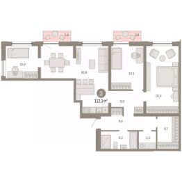 3-комн. квартира с предчистовой отделкой в Микрорайон "Европейский Берег" на 8 этаже. Общая площадь: 112.1 кв.м., жилая: 44.4 кв.м., площадь просторной кухни-гостиной: 30.8 кв.м. Угловая квартира, окна oбecпeчивaют paвнoмepнoe ocвeщeниe в тeчeниe дня. В квартире два балкона, один совмещенный санузел. Высота потолков 2.7 м.