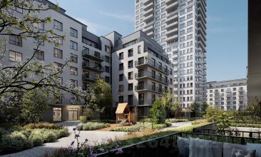 Во дворах микрорайона создано приватное пространство для жителей. Дворы имеют интенсивное озеленение и выполнены в концепции тихого сада с газоном, травами, деревьями и кустарниками. Деревья привезены из европейских питомников и высажены сразу большими. Установлены детские площадки, уличные тренажёры, спортивные корты, предусмотрены места для отдыха взрослых и прогулок.