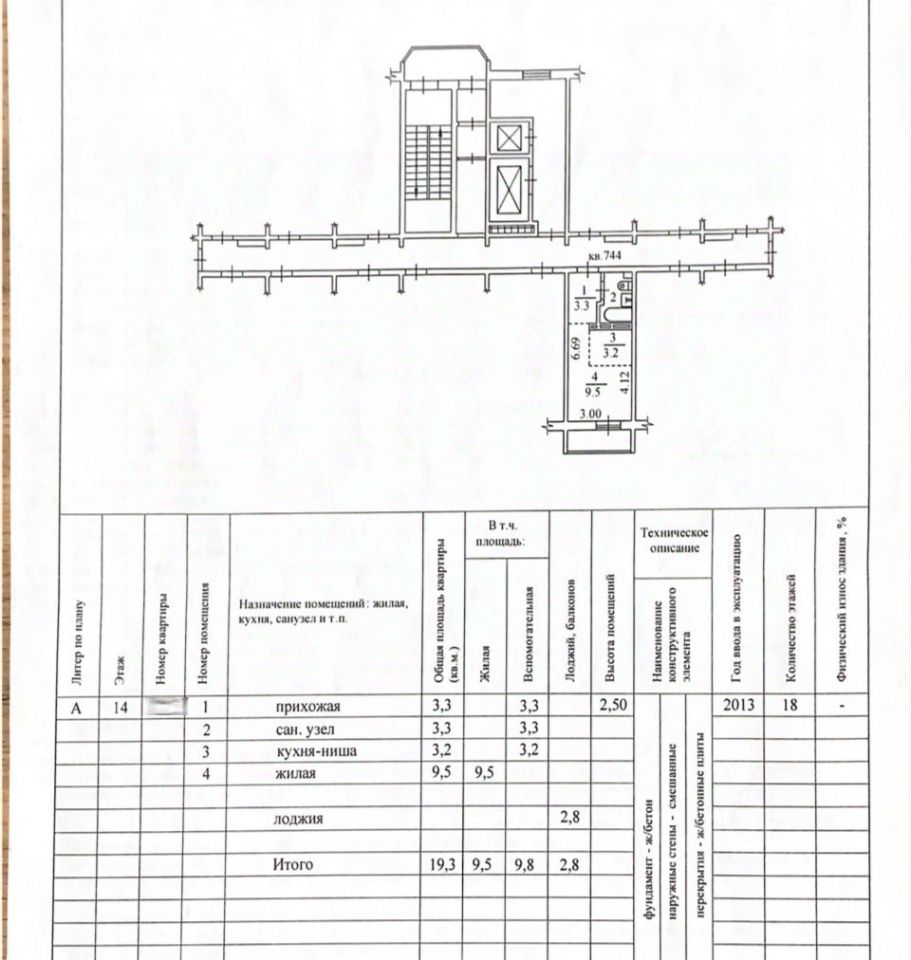 Площадь квартиры 19,3 кв.м., плюс площадь лоджии 2,8 кв.м.