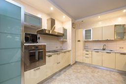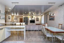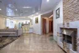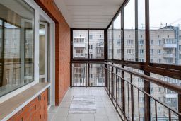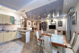 Особенностью квартиры являются высокие потолки и большие, панорамные окна, которые пропускают много естественного света. Квартира состоит из просторной кухни-гостиной с выделенной обеденной зоной, спальни, детской комнаты и кабинета. Имеются гостевой санузел с душем и общий холл в зоне прихожей. Гардеробная комната. Ванная комната — установлена душевая кабина