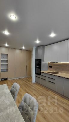 1) кухня: кухонный гарнитур со встроенной бытовой техникой (варочная панель, духовой шкаф, свч, посудомоечная машина, вытяжка), холодильник, обеденный стол, стулья;