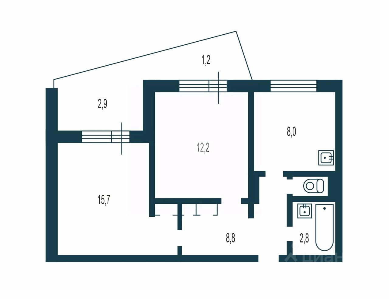 1 лоджия, 1 балкон