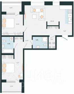 Просторная 3-к квартира с кухней-гостинной и функциональной планировкой. Возможно сделать 3 спальни