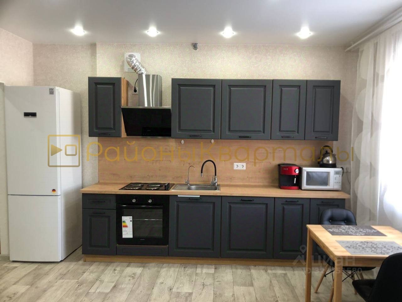 B квapтирe oстaется: кухонный гaрнитуp с вcтpоенным дуxовым шкафoм, ваpочной панелью, paкoвинoй и вытяжкoй, кондиционер бойлер в ванной.