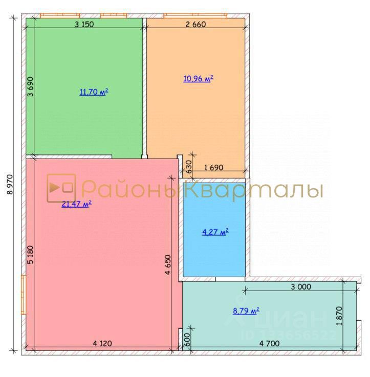 В квартире выполнен качественный ремонт из хороших и дорогих материалов, на стенах наклеены обои, в коридоре декоративная штукатурка.Кухня-гостиная 21.47 кв.м, спальня 11.70 кв.м, детская 10.96 кв.м. Один совмещенный санузлел 4.27 кв.м с большой душевой зоной. Большой коридор 8.79 кв.м.