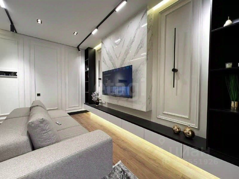 Квартира выполнена в современном дизайне с качественным ремонтом, нейтральной отделкой и продуманной функциональной планировкой, включающей изолированную спальню, просторную гостиную, отдельную кухню и прихожую с системой хранения.