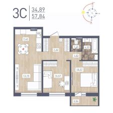 Продаётся 3-комнатная квартира в сданном доме (Забалуева, 69 (Дом 9)), срок сдачи: IV-кв. 2024, общей площадью 57.84 кв.м., на 12 этаже. Расположение, транспортная доступность