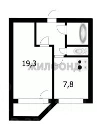 Общая площадь 35.2 кв.м., при этом жилая комната 19.3 кв.м. и позволяет зонировать спальное место.