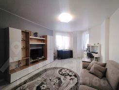 Большая кухня с диваном и выходом на балкон. Просторная комната с эркером. Имеется гардеробная. Стены под покраску, натяжные потолки, в коридоре керамогранит, в комнате и кухне линолеум полукомерция. Ванна с гидромассажем, унитаз инсталяция.