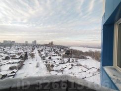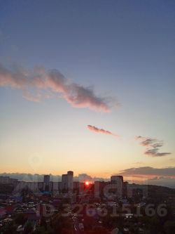 Из окна открывается красивый вид на арку Бугринского моста и тёплые краски заката.