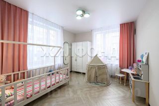 просторная кухня-гостиная 28,1 м2, удобная мастер-спальня (состоит из спальни 15,92 м2, гардеробной 4,2 м2 и санузла с душевой зоной 3,35 м2), две детских комнаты по 11,5 м2, санузел с ванной 4,5 м2, гардеробная в прихожей 3,1 м2.