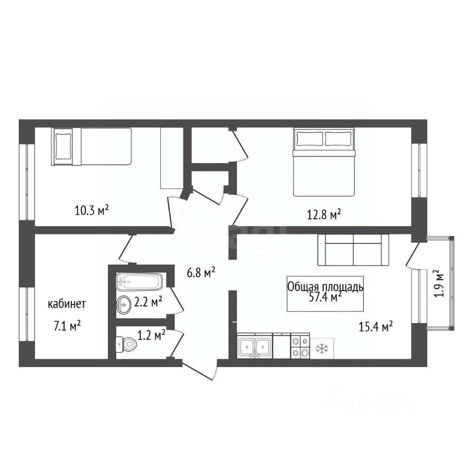 3 полноценные комнаты 13, 10 и 7 метров