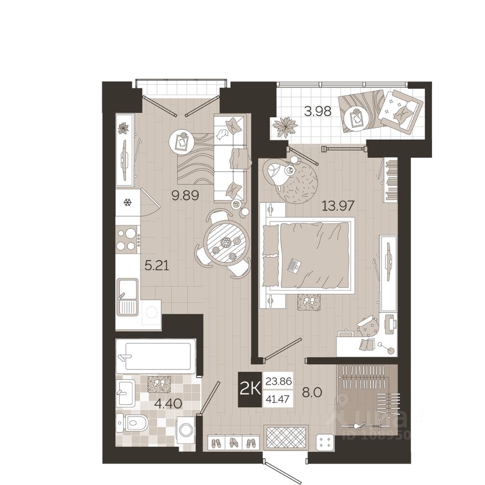 Общая площадь41,47 м²