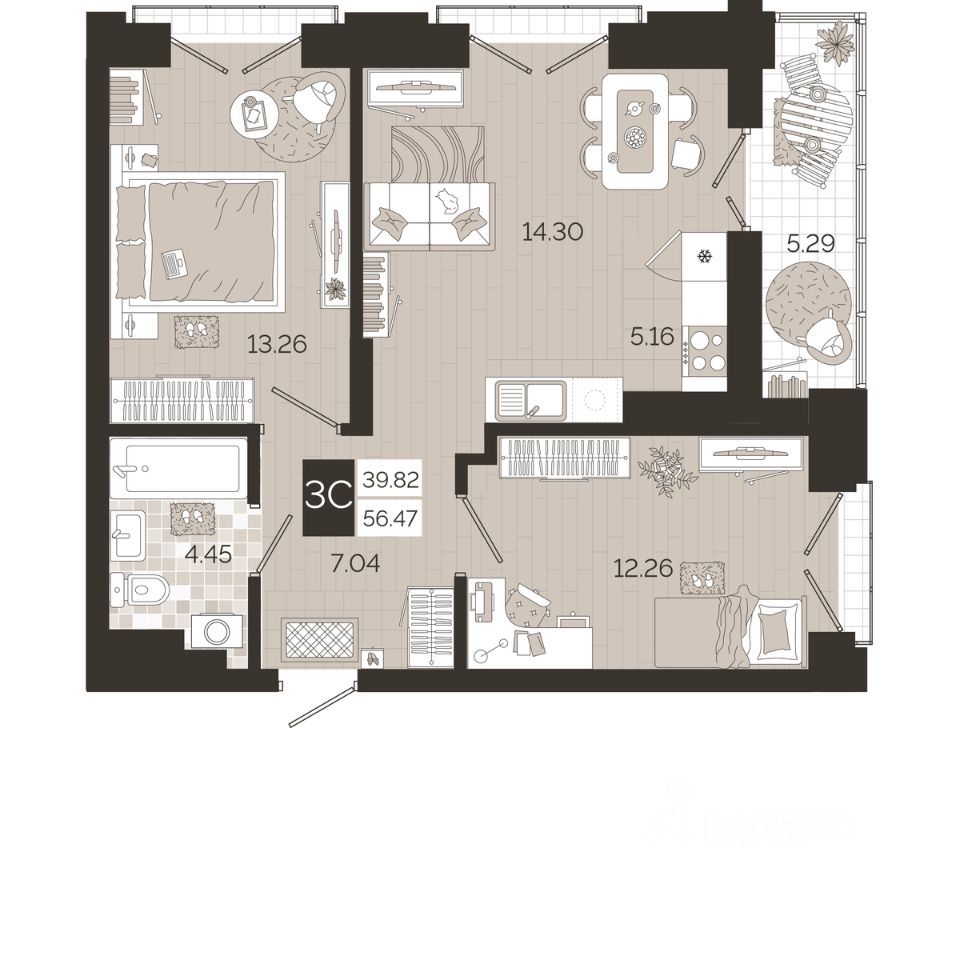 Общая площадь56,47 м²