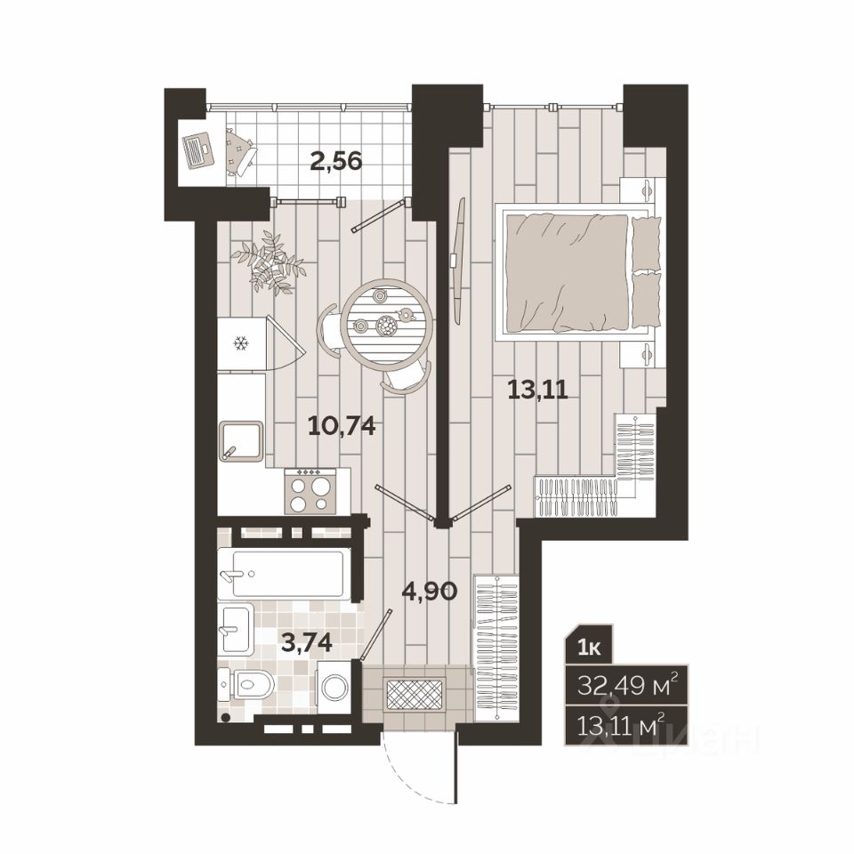 Общая площадь32,49 м²