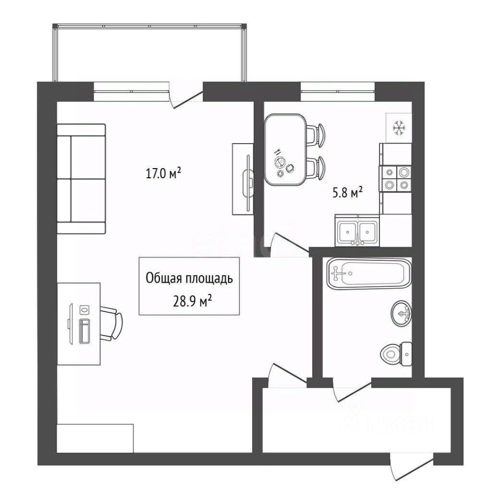 Объект отличается рациональной планировкой с изолированной кухней в 6 кв. м и собственным балконом, что создает дополнительные возможности для отдыха и хранения.