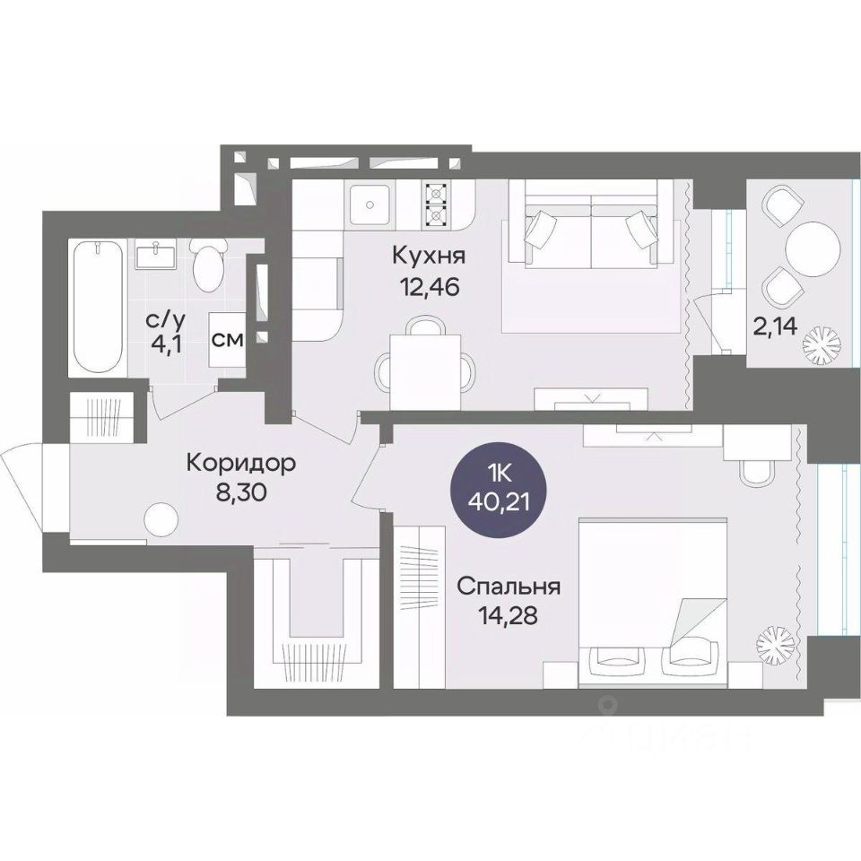 Общая площадь40,21 м²